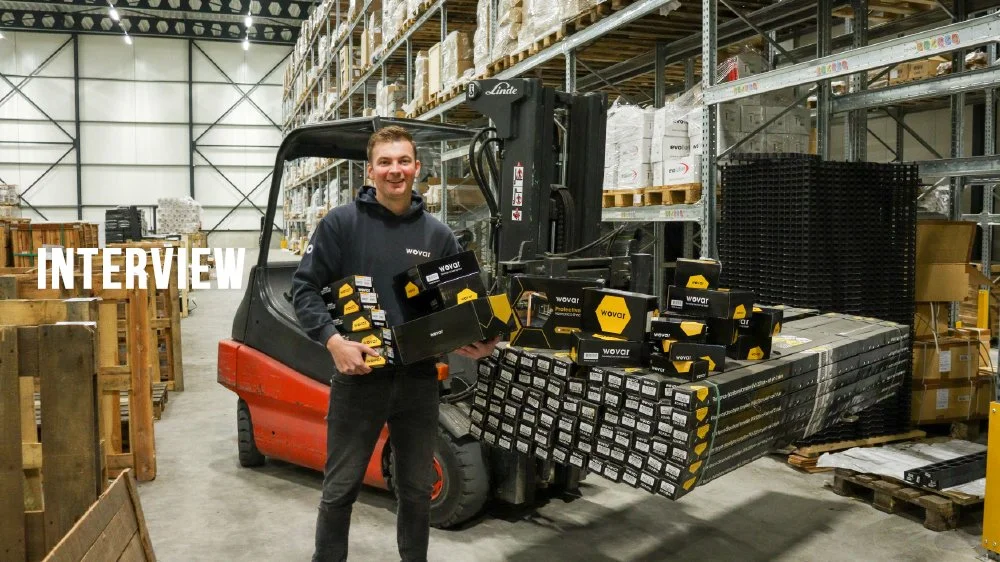 Jesse Keizer in het magazijn van Wovar in Groningen