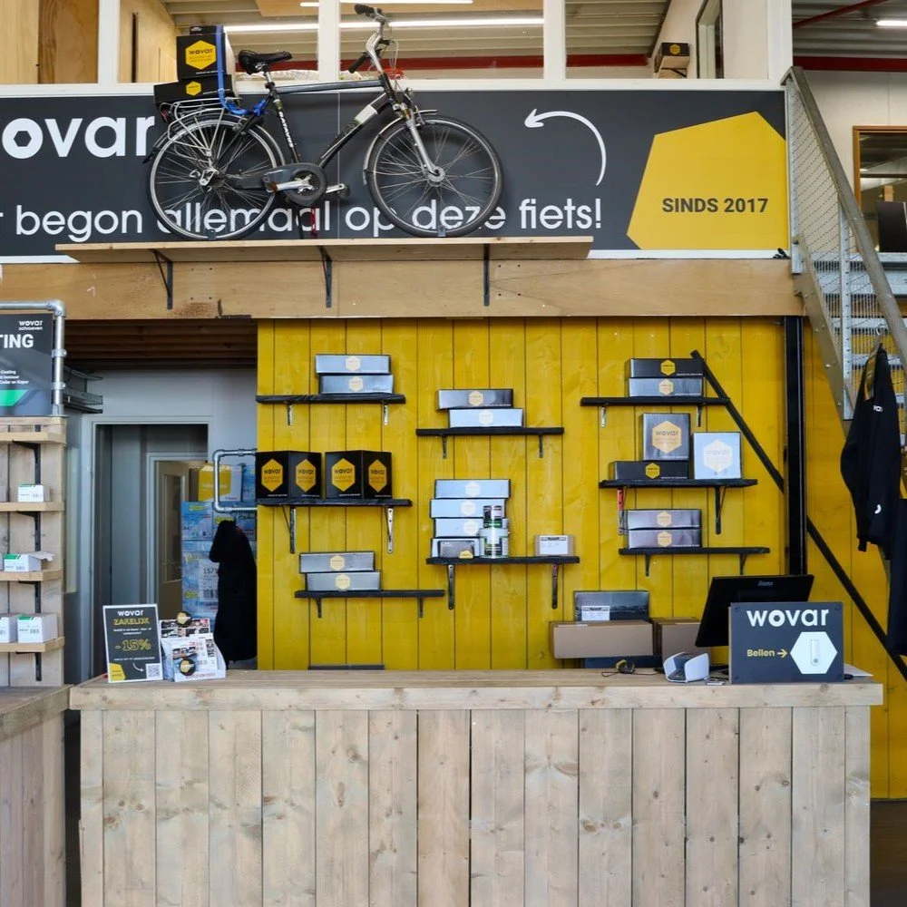 Het zelfde geldt voor een auto. Die had ik in het begin niet, dus bracht ik pakketten op mn fiets naar het Postnl punt. Deze fiets stond in ons oude pand in de showroom, een ideetje van een collega.