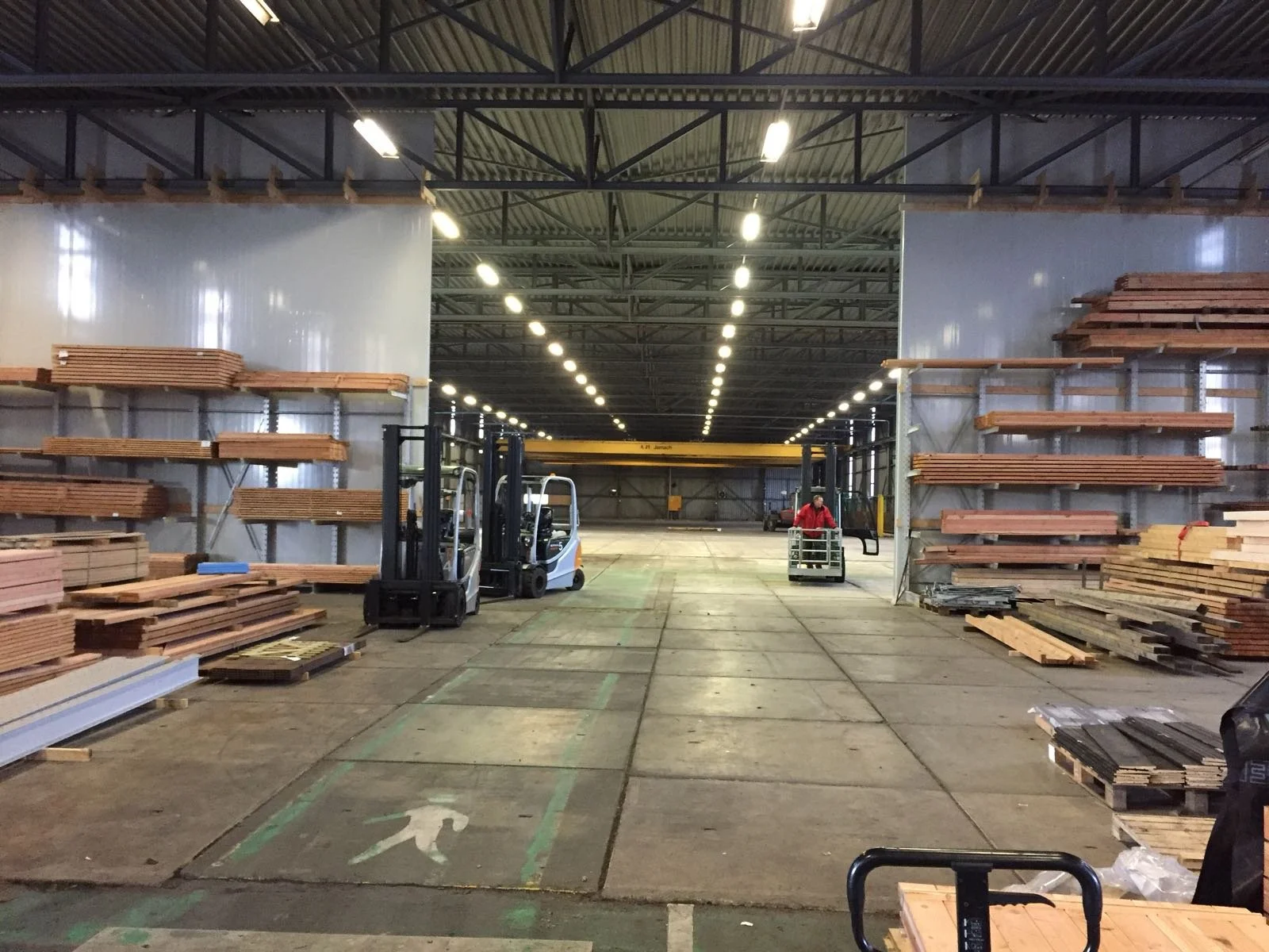 Nadat mijn broer in 2013 was uitgestapt voegden we meerdere leveranciers toe, dat zorgde voor complexiteit. Men kan namelijk zowel items van de ene en andere leverancier in 1 order bestellen. Het kantoortje bovenin de schuur op een landweggetje in Oost Groningen bij mijn broers huis vond ik maar nix. In Groningen-Stad huurde ik binnen een maand na de overname een box op het Groothandelscentrum van zo’n 400m2. Hier konden klanten vanaf nu ook afhalen en begonnen we met eigen voorraad. Heel spectaculair en stoer vonden wij het toen dat we van 6 soorten planken een vol pak op voorraad hadden. Naast deze 6 soorten planken hadden we nog enkele tuinmeubels zoals picknicktafels en de loods zat al nokvol. We hadden een enorm oude stinkende heftruck op gas. Met het oude bommelding vol gas door de loods en je werd nog net niet vergast (tranende ogen kan ik mij nog goed herinneren).