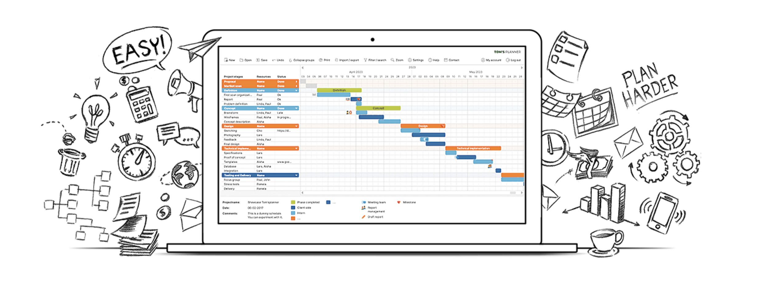 Soms kan je in Excel net niet wat je zou willen, maar heb je ook geen behoefte aan een zwaar software programma. Tom’s planner is een slim online planningsoftware programma die dit heel goed snapt. Snel een planning maken om teams in te delen of een project te plannen werkt allemaal heel lekker. Je kan veel werken met kleurtjes en blokken slepen. Je kan je planningssysteem bovendien eenvoudig delen met anderen.